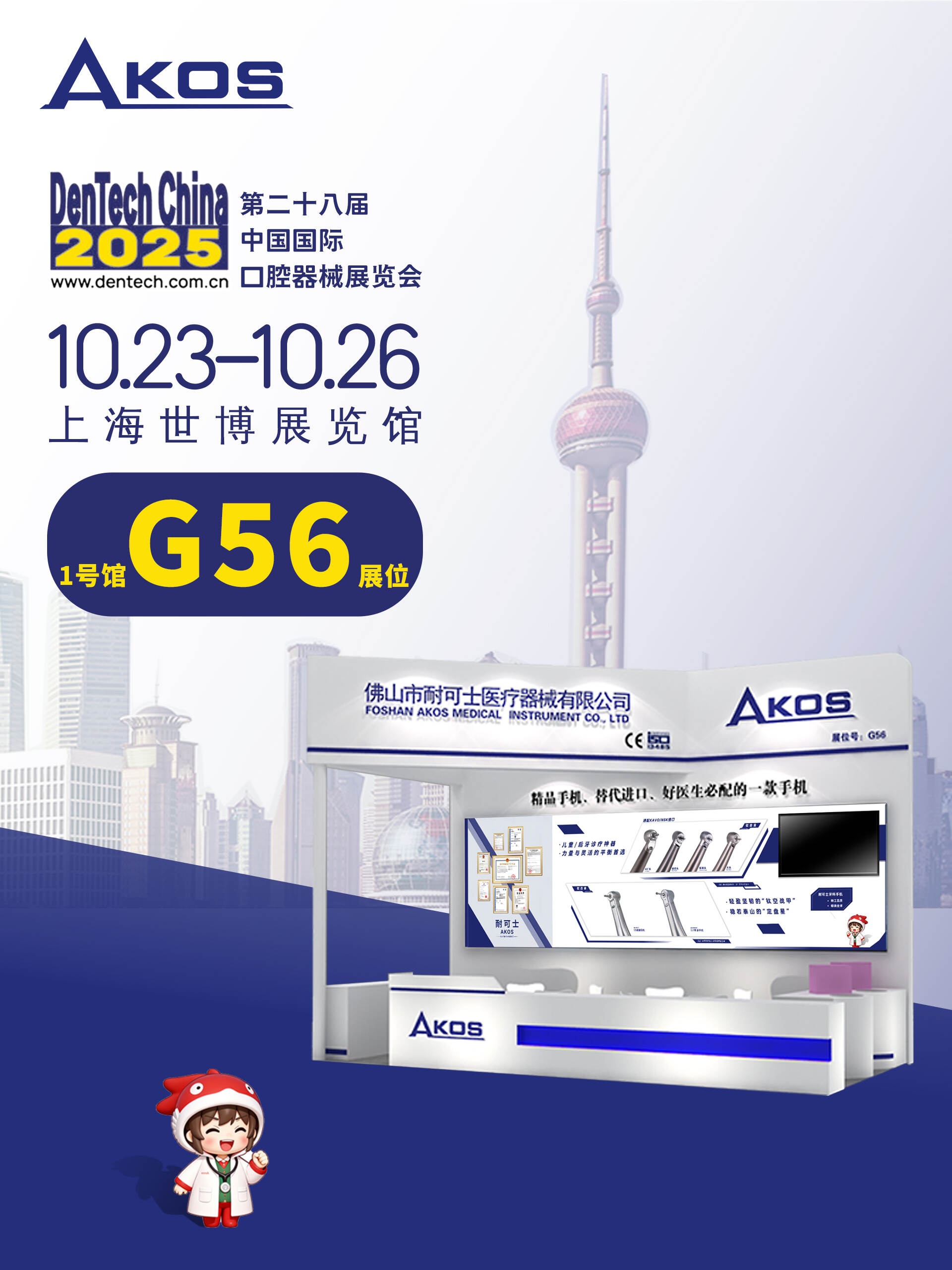 尊敬的牙科医生、业界同仁及所有关注口腔健康的朋友们,2025年上海口腔展(DenTech China 2025)将于10月23-26日在上海世博展览馆盛大开幕。耐可士诚邀您莅临我们的展位(展位号:G56),共同探索牙科手机研发制造领域的前沿科技与口腔医疗应用的创新解决方案。
